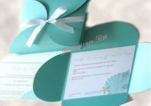 Hermoso diseño con fino liston en color a elegir , que cubre la invitación y le da un toque sencillo y elegante. Incluye dos boletos por invitación.