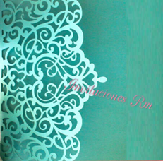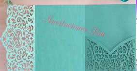 Hermosa invitación con corte láser , con finos detalles de suaje con diseño de corazones.