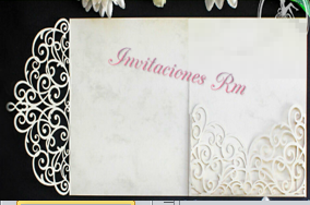 Hermosa invitación con corte láser , con finos detalles de suaje